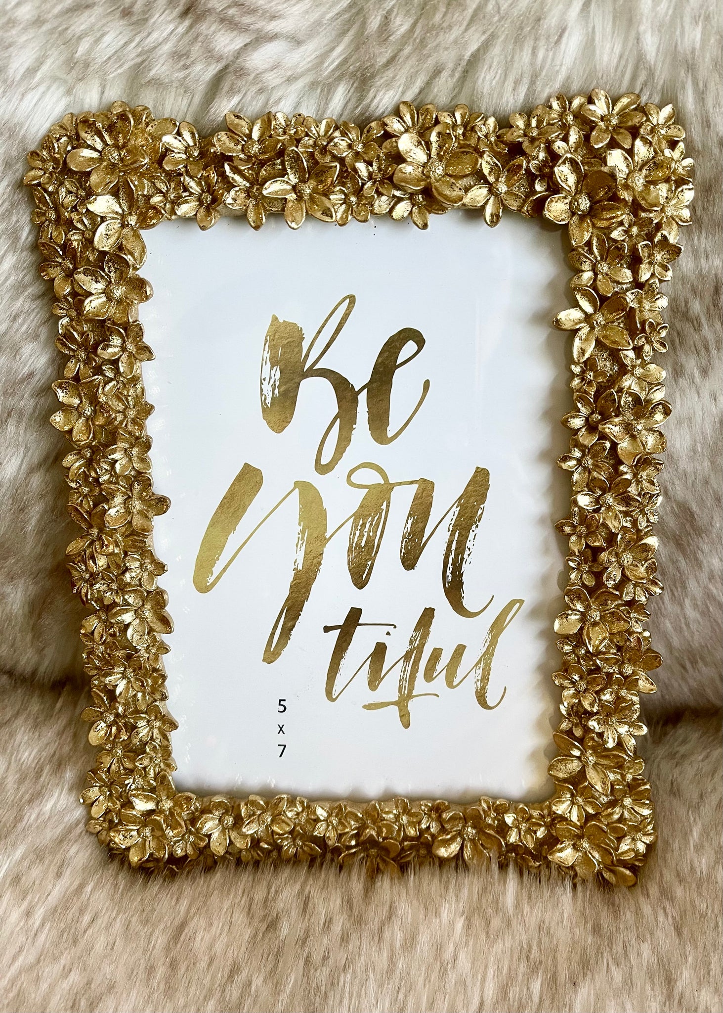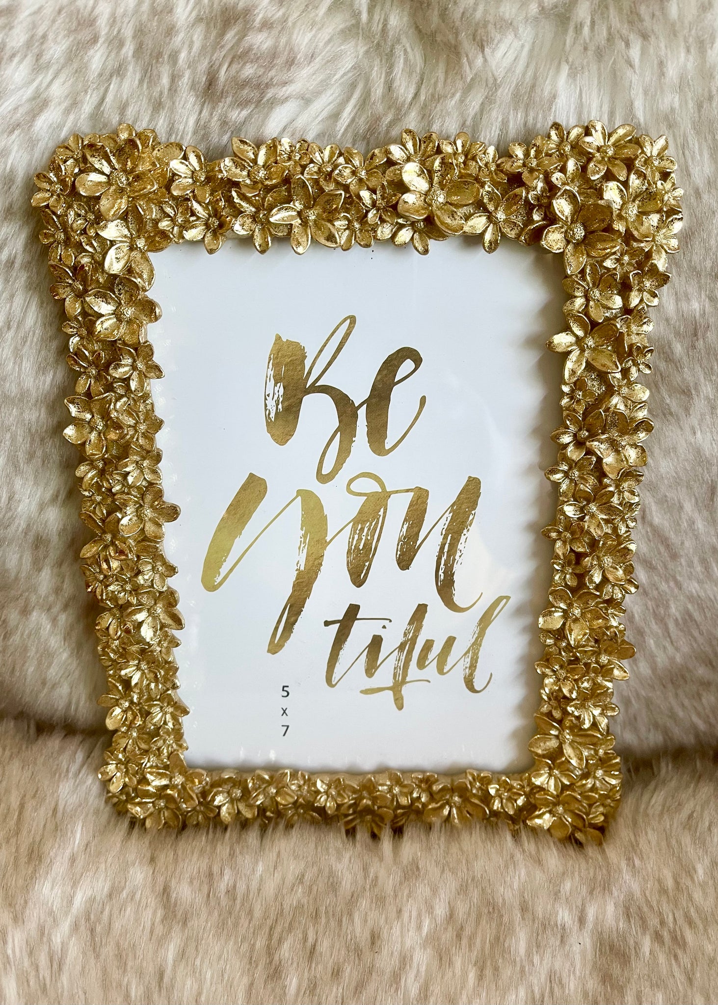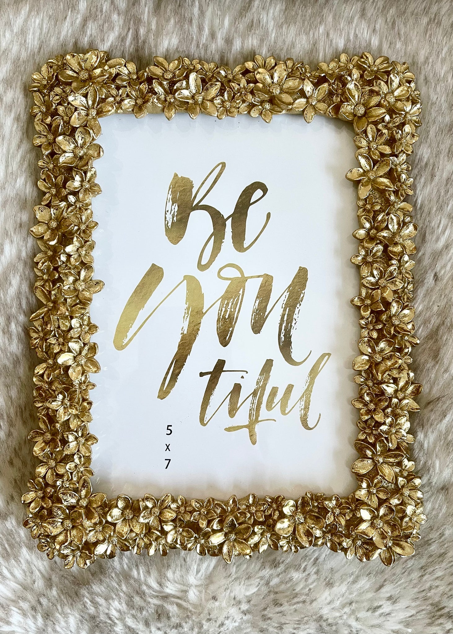 Display your favorite memories in true elegance with the Everlasting Memories Gold Flower Picture Frame. Crafted with an antique gold finish and a sparkly flower border, this 5x7 frame is sure to wow. It is quintessential for creating the perfect touch of sophistication to any space. Make your space sparkle with this beautiful gold floral picture frame.