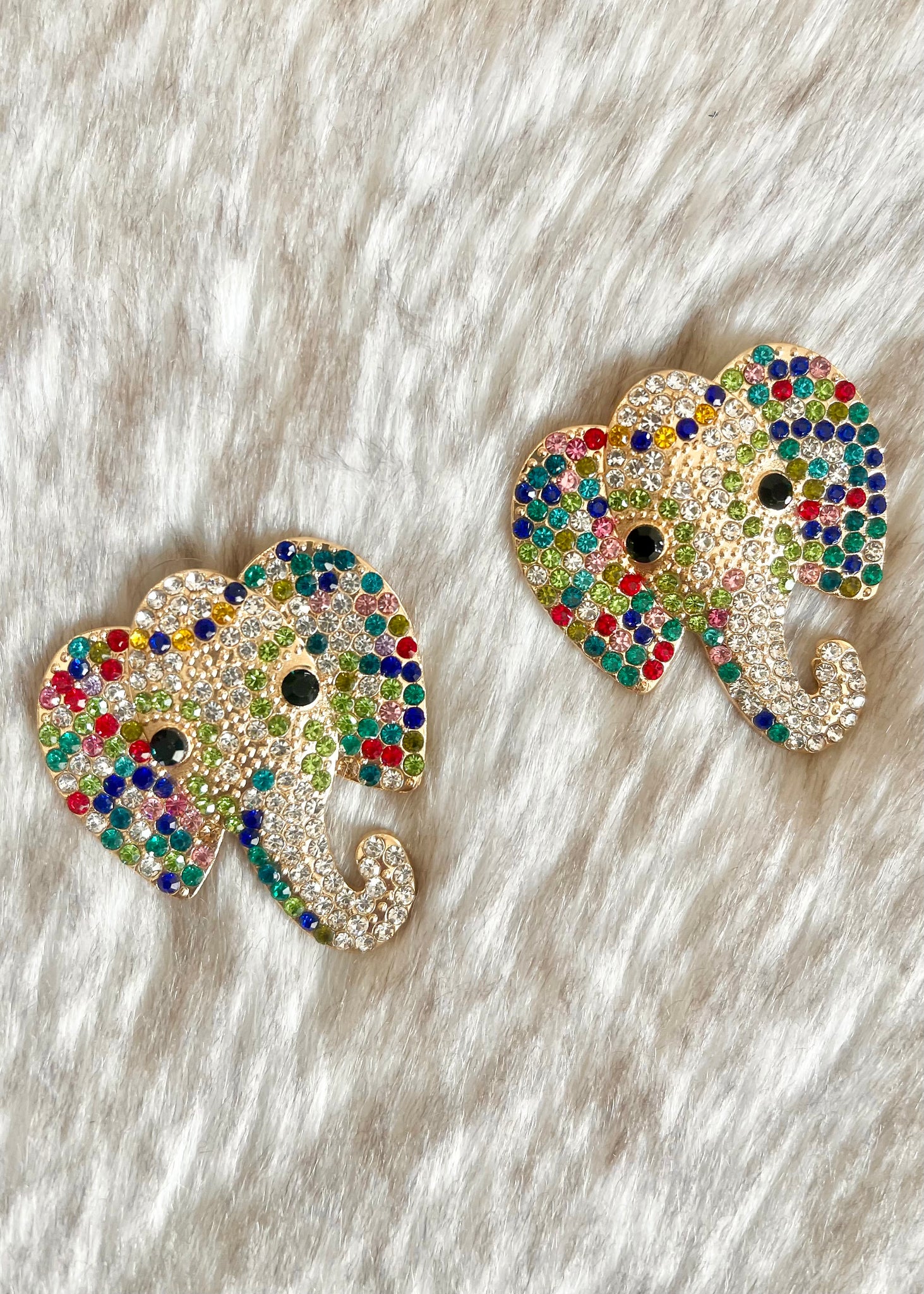 So vibrant and unique, these Larger Then Life Elephant Earrings are stunning! Crafted with vibrant multi-colored stones and gold hardware, they are a must-have for any animal lover. The colorful shimmery stones are so alluring, they are sure to make a bold statement. Add these incredible multi-colored, elephant earrings to your outfit to take your look to another dimension. They will be the source of admiration and conversation, adding to your larger then life personality.