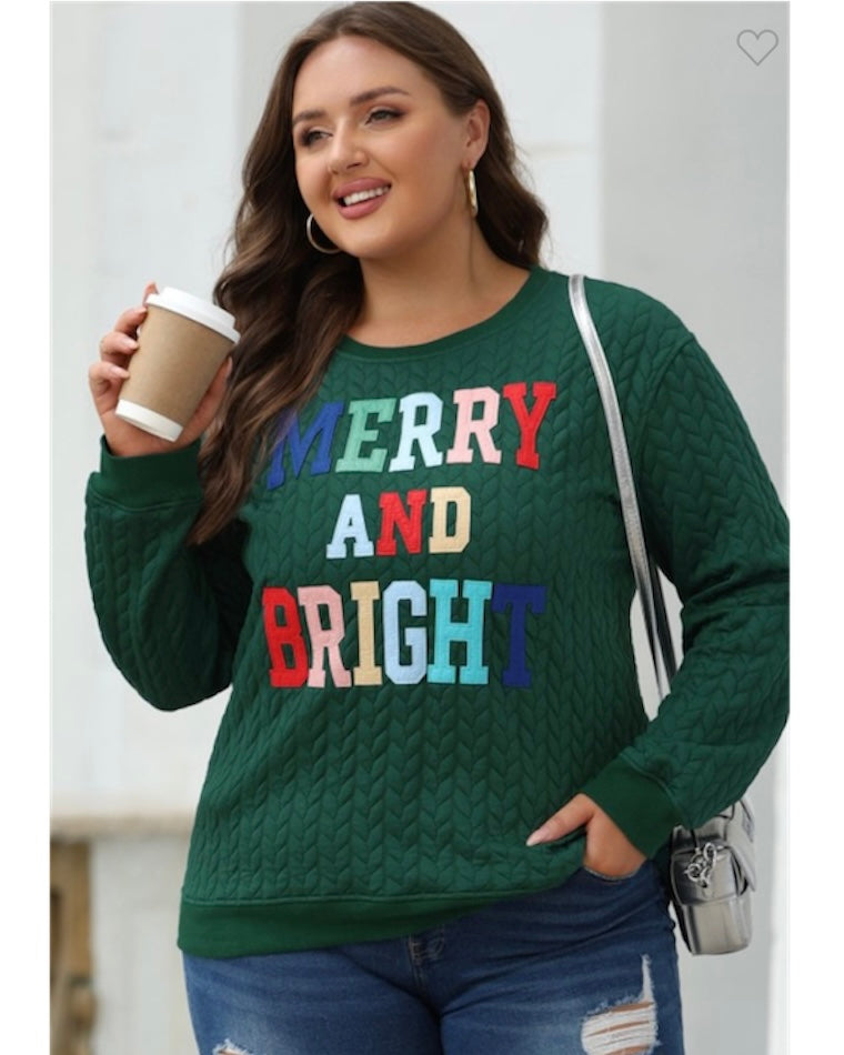 Stay cozy and festive this holiday season with our Merry And Bright sweatshirt! Featuring a colorful and playful embroidered patch, this cable knit sweatshirt will keep you warm and stylish while turning heads. It has a round neck which provides ultimate coverage and a timeless style. Stand out and spread some holiday cheer with this quirky and fun addition to your holiday collection.