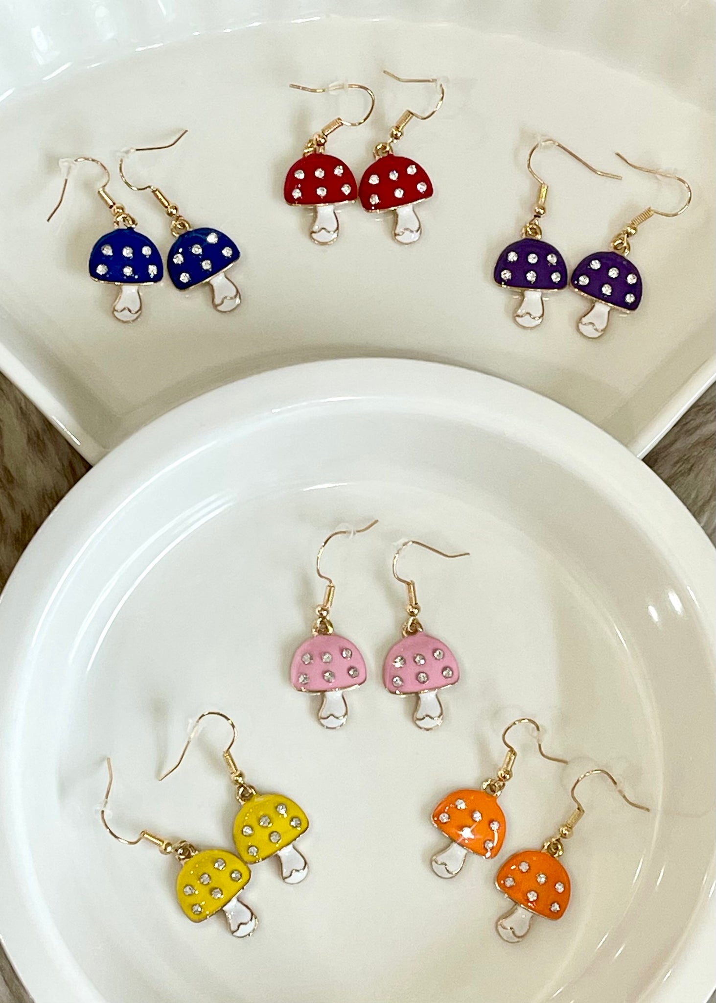Add a little fun to your style with these colorful mushroom earrings. Crafted with gold hardware and bold rhinestone detail, these cute and dangly mushroom earrings will make you stand out and spark the imagination of everyone you meet. Not to mention, you won't be able to keep a smile off your face! Add these unique cuties to any outfit and let your inner child beam.