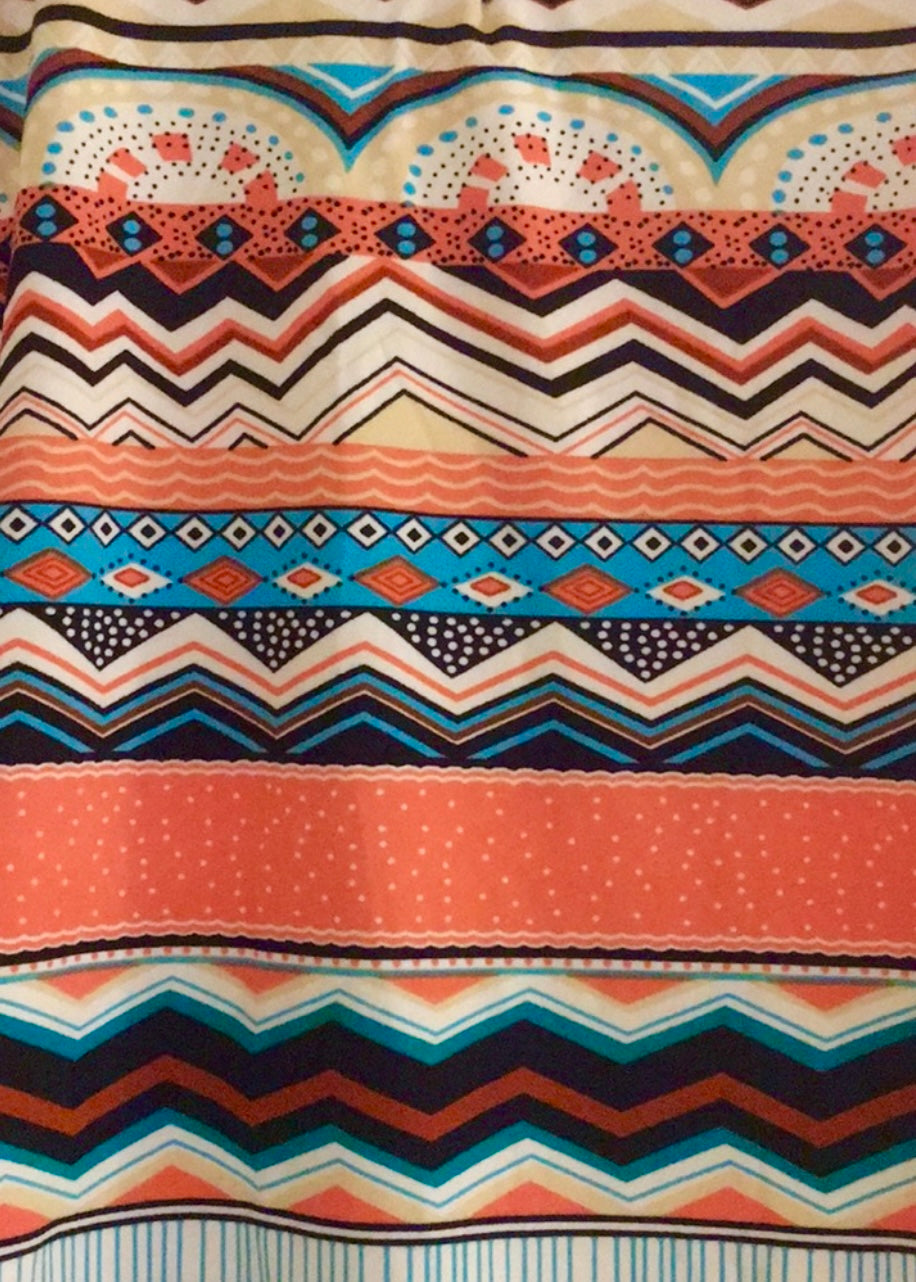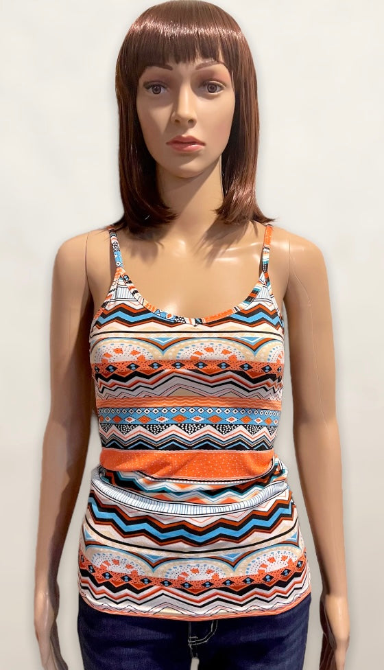 Pay homage to the Aztecs and their contributions to society by rocking this cami top. It has an all-over Aztec print of chevron, polka dots, and 2D shapes. The rich earth tone colors are so warm and inviting, allowing you to reflect on the beauty of our earth. It is made from soft, stretchy material and is very versatile. Pair it with a jacket and an A-line or pencil skirt with coordinating heels for an office friendly look. Looking for something more casual? Simply pair it with a jacket and jeans or shorts for a simple summer look.