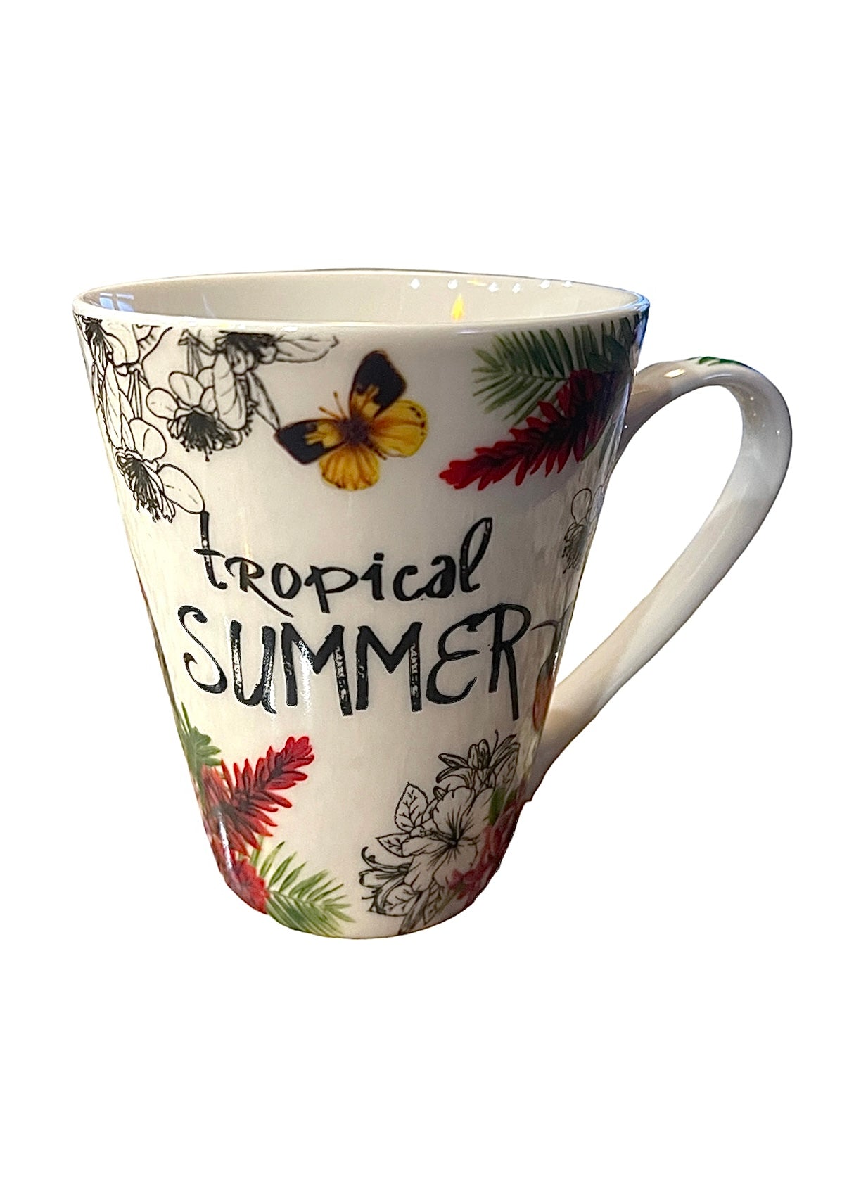 What’s better than waking up to a fresh cup of deliciously brewed coffee to get you going in the mornings. This tropical print coffee mug is perfect for holding your favorite hot beverage while you daydream about being on your favorite island. It has an all over tropical print with flowers, butterflies, and birds. It has the words “tropical summer” printed on it in black letters. Rise and shine early to get a head start on the days to-do-list. Feel energized and motivated to conquer the day as you sip your morning coffee from this cute tropical mug.