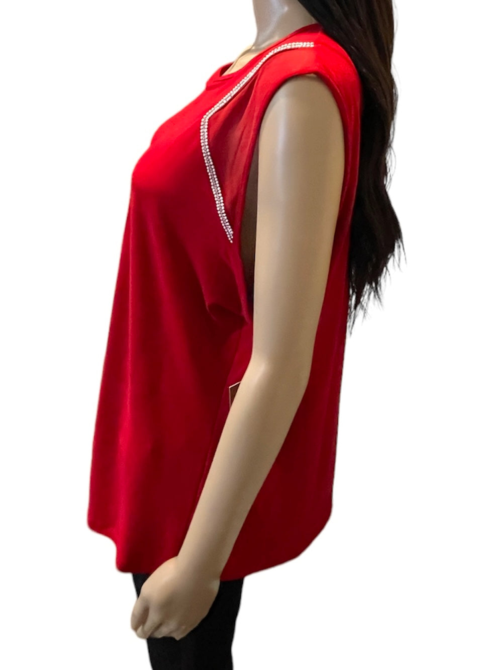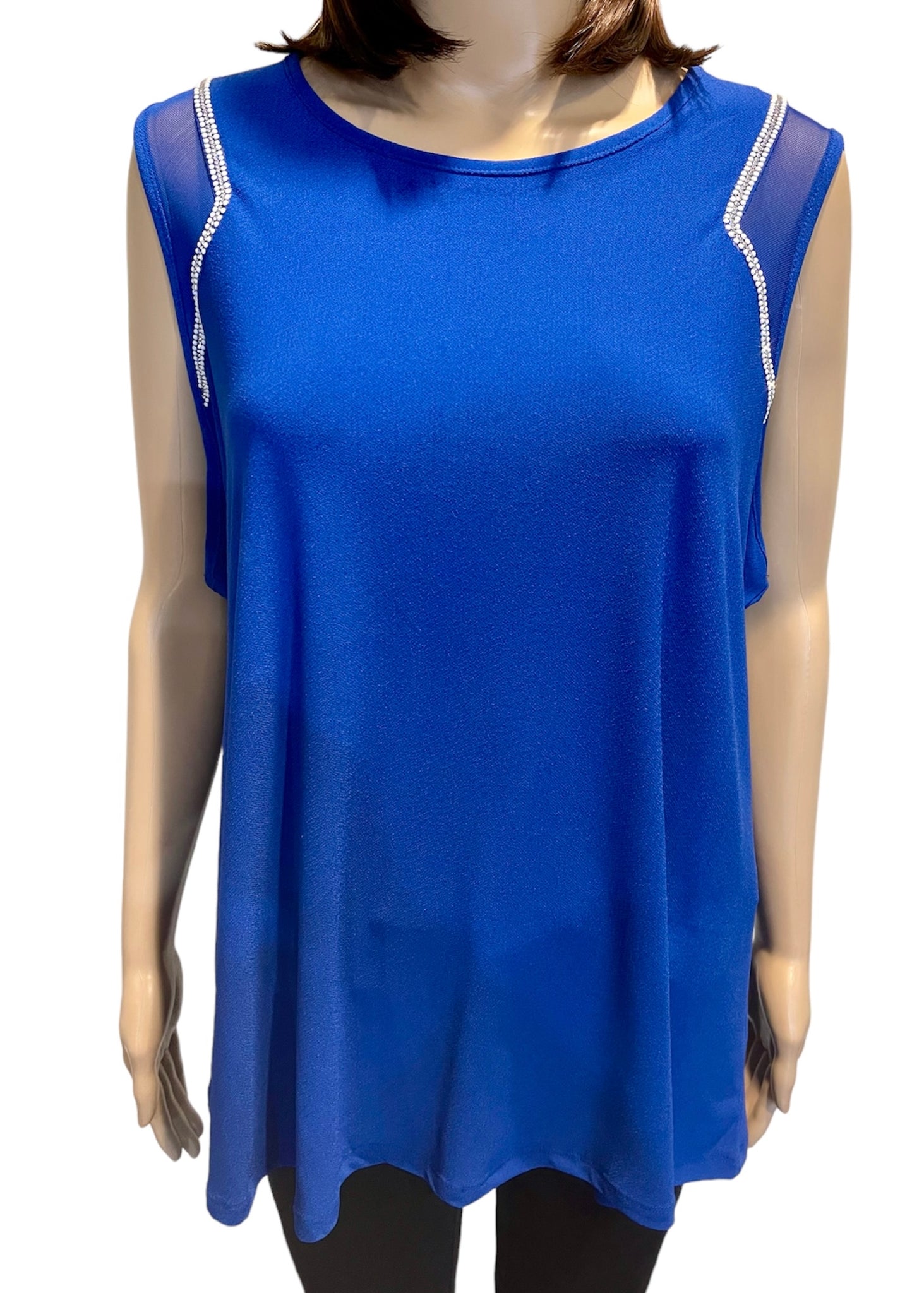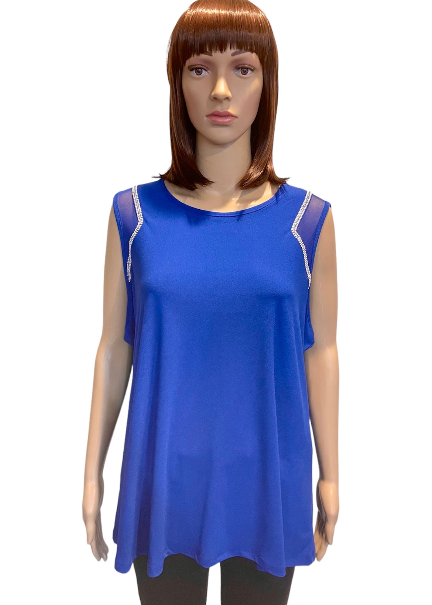 Indulge yourself in luxury and sophistication with our Sophisticated Lady Beaded Blouse. This blouse features a round neck with a bright white beaded shoulder design, embellished with sparkling rhinestones. The sleeveless design and sheer shoulder panel add a touch of glamour, while the solid pattern makes it easy to coordinate matching bottoms. This blouse has a high-low hemline which provides a little extra coverage in the back. Pair it with a pair of white bottoms for an ultimate, chic, summer look. Upgrade your wardrobe with this exclusive blouse to embody complete class and grace.