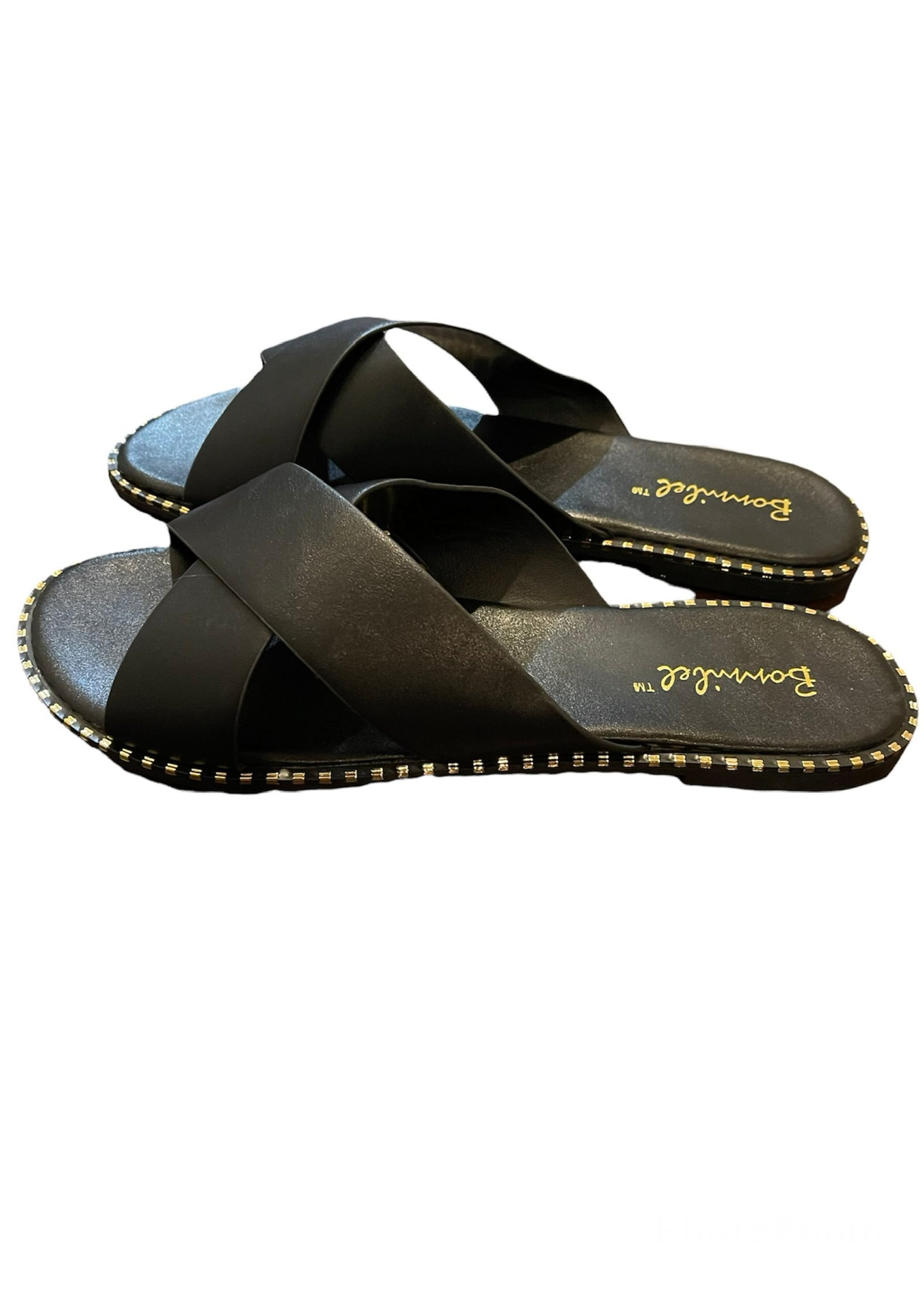 Beat the southern heat while spending time with family in these fabulous little sandals. They are black with thick straps that crisscross across the top of the foot. They are accented with a gold trim which adds boldness and sparkle. They have a cushioned footbed which is a must for long lasting comfort. They are so chic and can be worn with a variety of looks including shorts, jeans, and dresses. Proudly display your southern charm and show the world how fashionable you are.