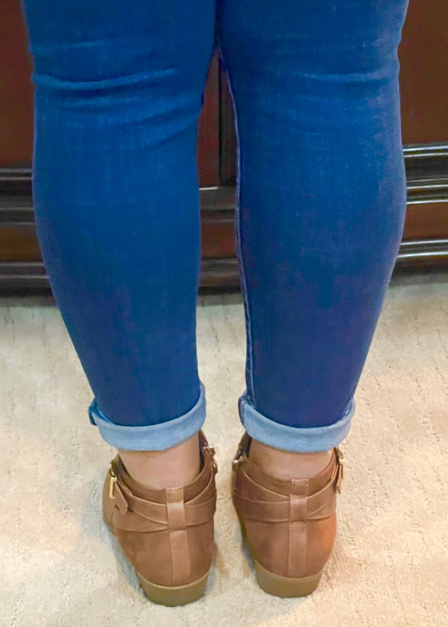 Who doesn’t love a great bootie? They are a fashion must-have and are an essential item in every woman’s closet. These neutral colored tan booties are no exception. They are made of mixed fabrics which give them an appealing look. The majority of the boot is made of faux leather while the back part around the heel is faux suede. They have a side zip and a gold buckle for added detail. They are a great neutral color with a classic style, making them a perfect match to almost every outfit.