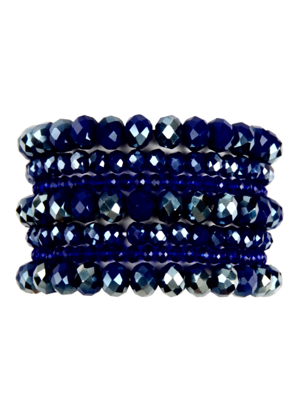 Add some sparkle to your life with these amazing blue sapphire stretch bracelets. They are made of dark blue and gray beads specifically cut to give them a radiant sparkle from every angle. They come in a set of seven individual bracelets so you can wear them all stacked or just a few at a time for a more minimal look. Mix them with other colored bracelets for a personalized look. Take your outfit to the next level with these amazing blue sapphire stretch bracelets.