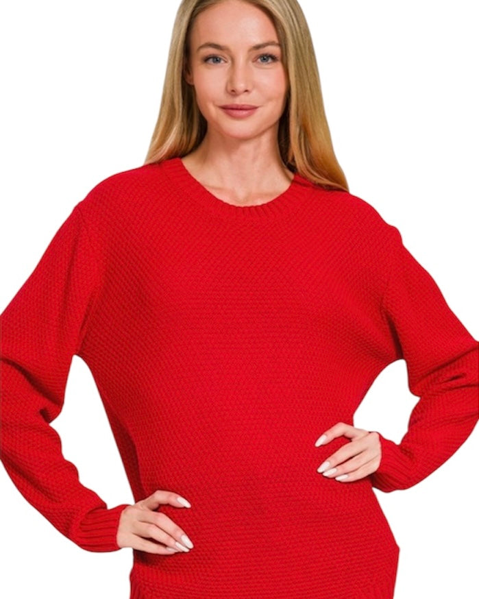 Get cozy with our Small Wonders Textured Sweater! Featuring a round neck and ribbed details, this midweight sweater is perfect for fall and winter. Its unique texture and rounded bottom hem make it a staple in any wardrobe. Pair it with jeans and your favorite boots or sneakers for an effortless look. Get ready to conquer your busy day in this amazing sweater.